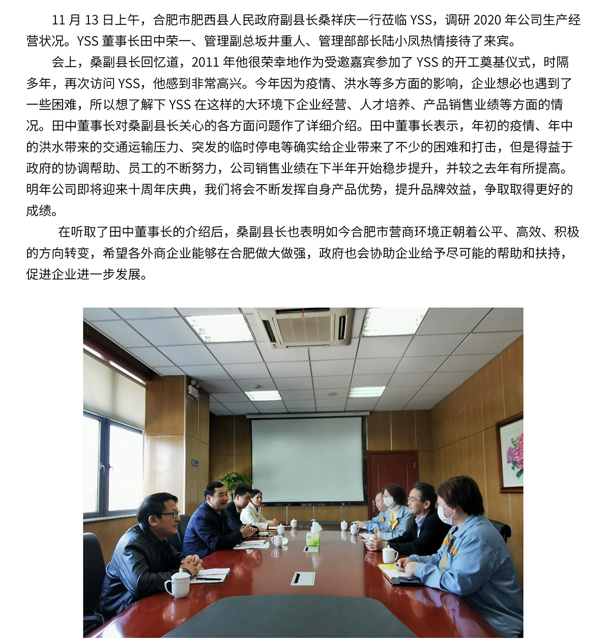 肥西縣政府桑祥慶副縣長一行蒞臨YSS調研