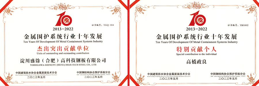 今年是協(xié)會成立十周年,恰巧也是淀川盛馀投產(chǎn)十周年。十年來,在協(xié)會引領下,中國金屬圍護系統(tǒng)行業(yè)迎來了高速發(fā)展和逐漸走向?qū)I(yè)化、標準化、系統(tǒng)化。在2017年,淀川盛馀更是有幸承辦了第4屆全國金屬圍護系統(tǒng)行業(yè)大會,成為國內(nèi)涂鍍行業(yè)首家承辦全國金屬圍護系統(tǒng)行業(yè)大會的企業(yè)。